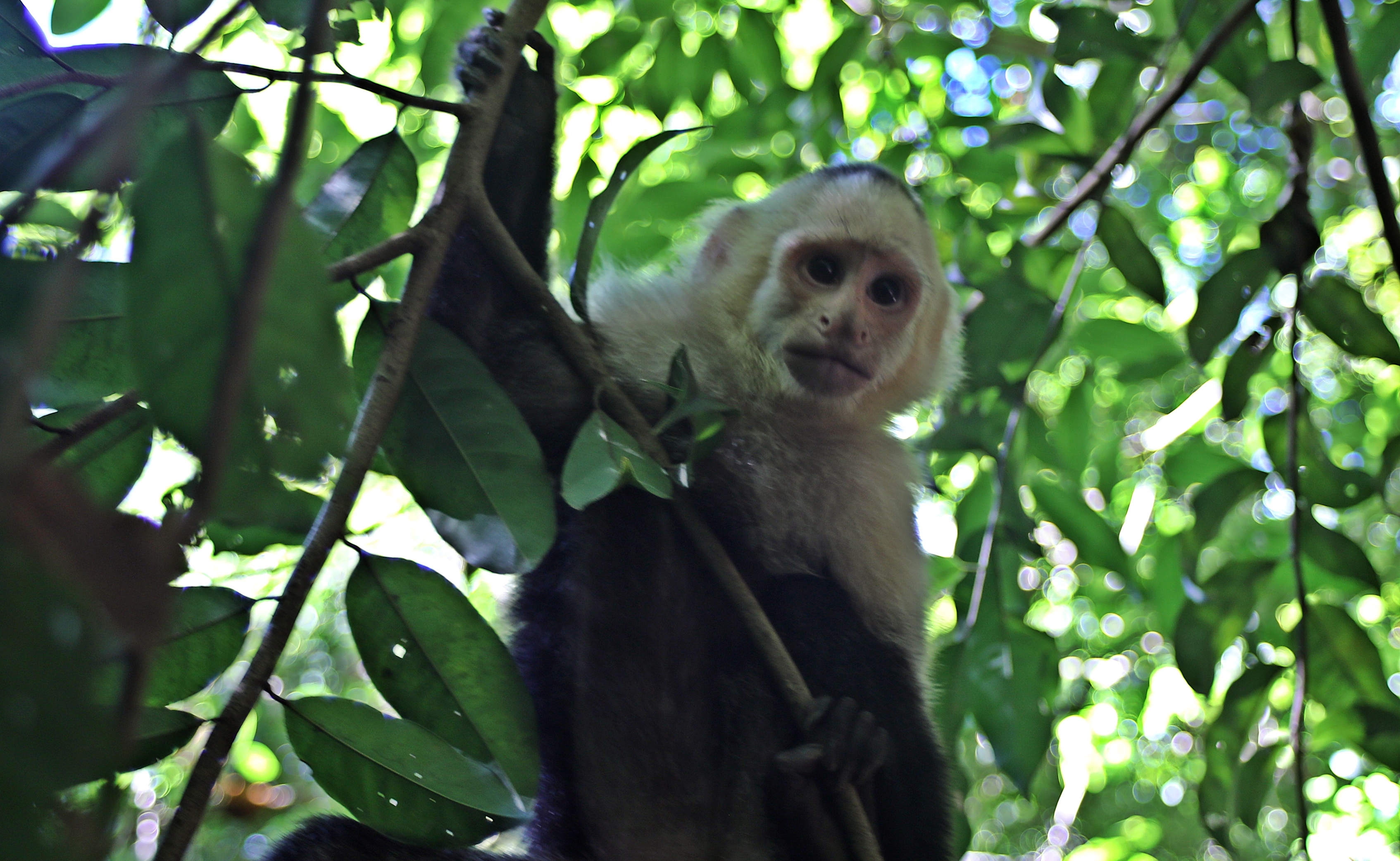 We love monkeys, and these cute capuchins are one of our new favourites. Their name comes from the black cap on their heads that make them look similar to capuchin monks. They are touted as being the smartest of the New World Monkeys and are fast, nimble and great thieves. We saw one steal a wallet out of a zipped bag, and another that snuck a burrito out of a beach bag. As we were walking along one of the wooden trails we were delighted as a troupe came by, crashing through the trees, climbing up and down tree trunks and out on to the end of the limbs to eat the leaves. `